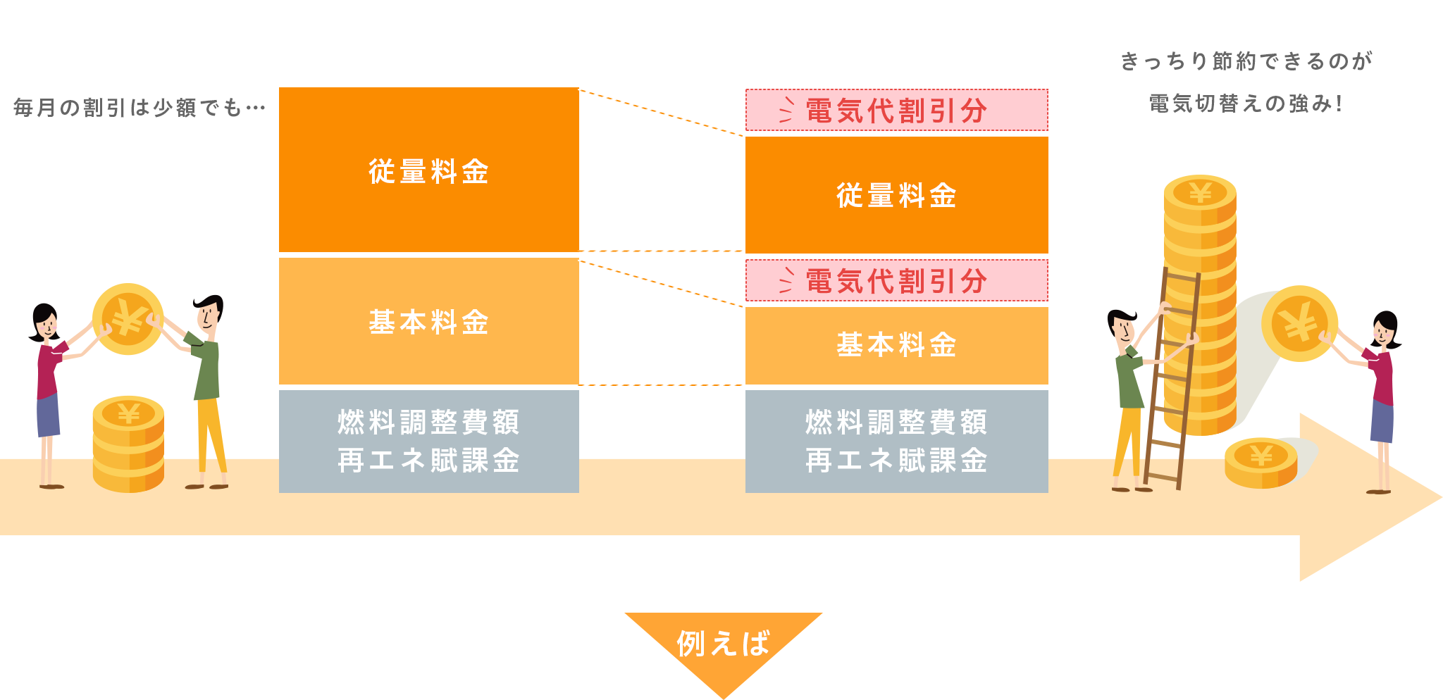 - ※4 割引の対象は基本料金と従量料金です。再エネ賦課金と燃料調整費額については現在と同じです。
